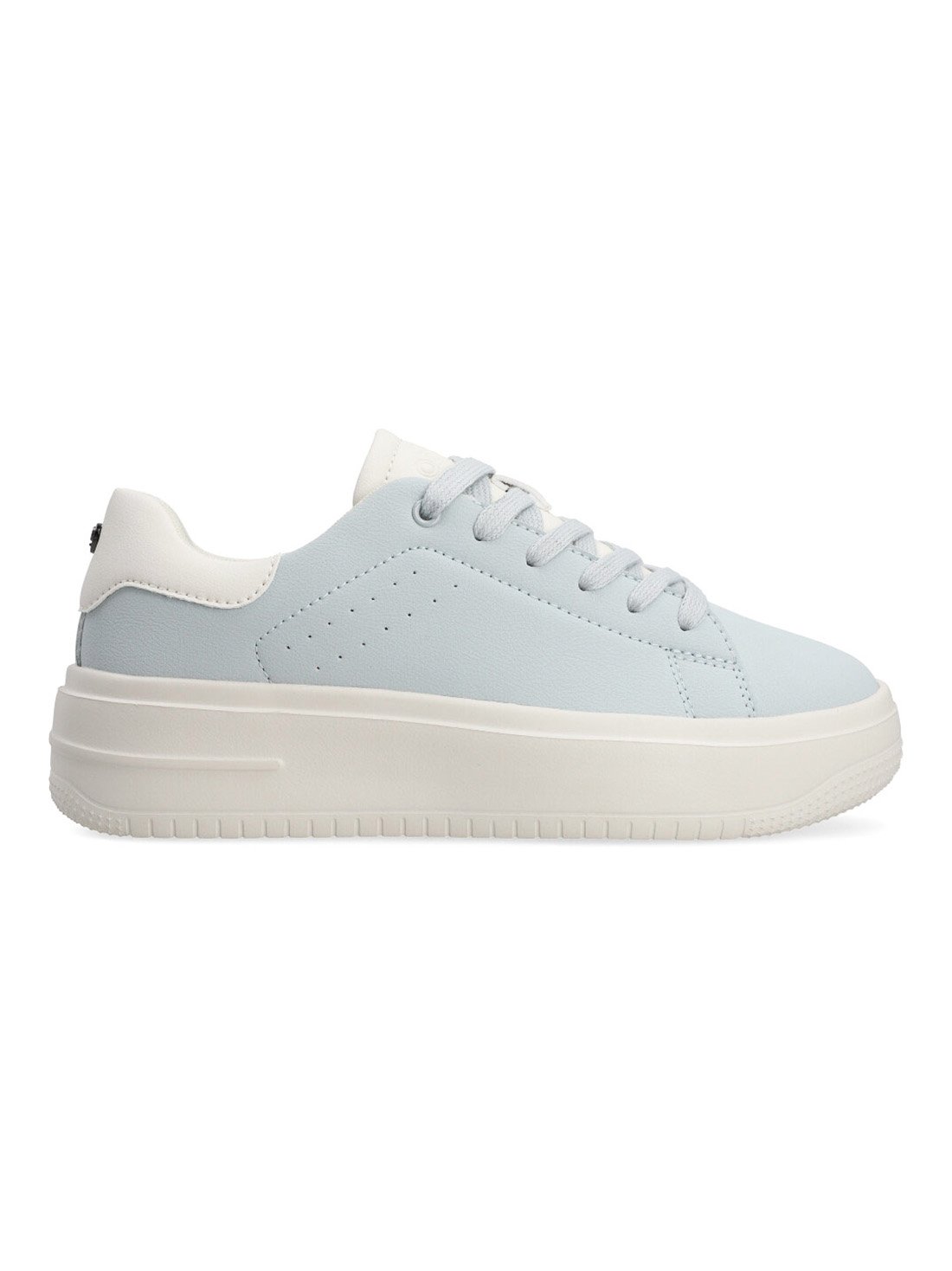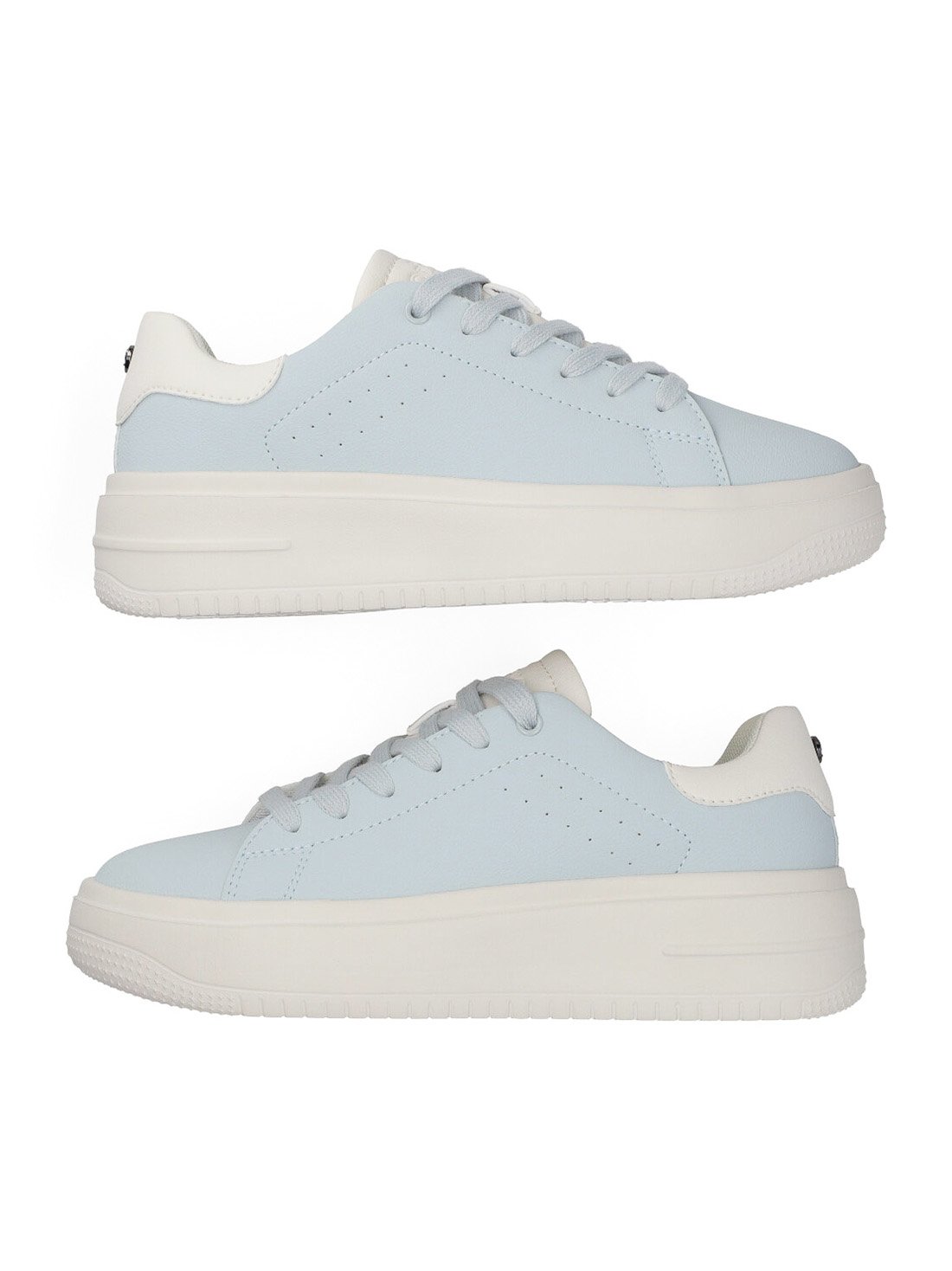 Estos tenis en tono azul pastel con suela blanca elevan cualquier look con un estilo fresco y minimalista. Su diseño de líneas limpias y materiales suaves aporta un toque moderno.