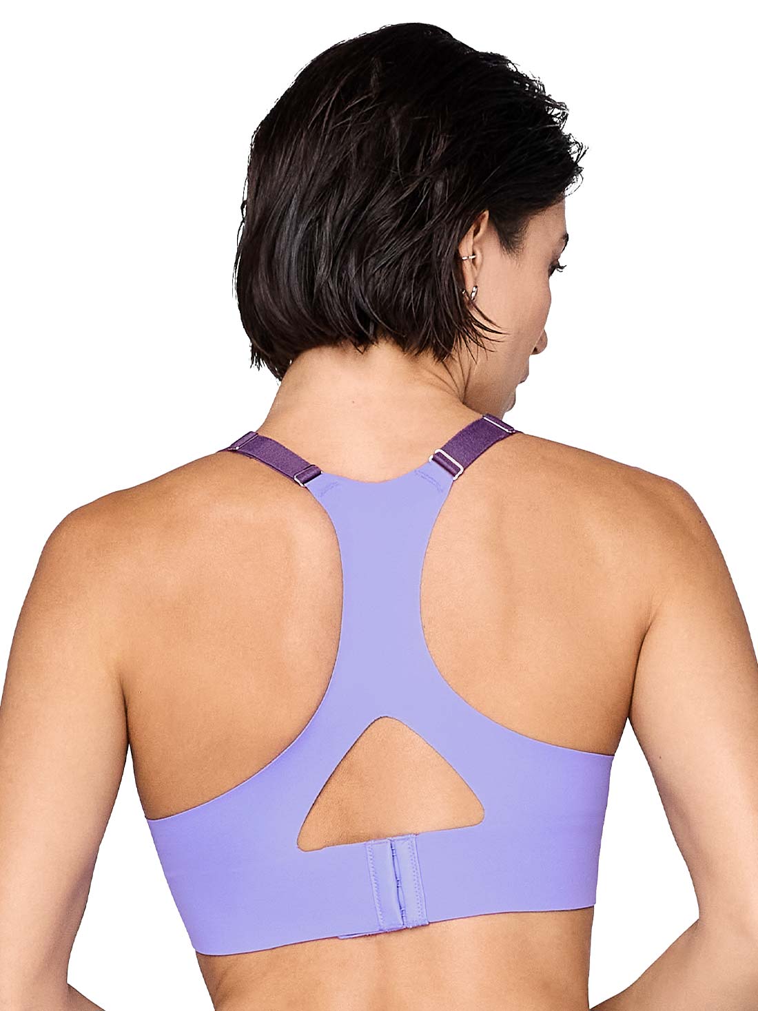 La espalda tipo racerback mejora el soporte y te da libertad de movimiento sin que se bajen los tirantes.
