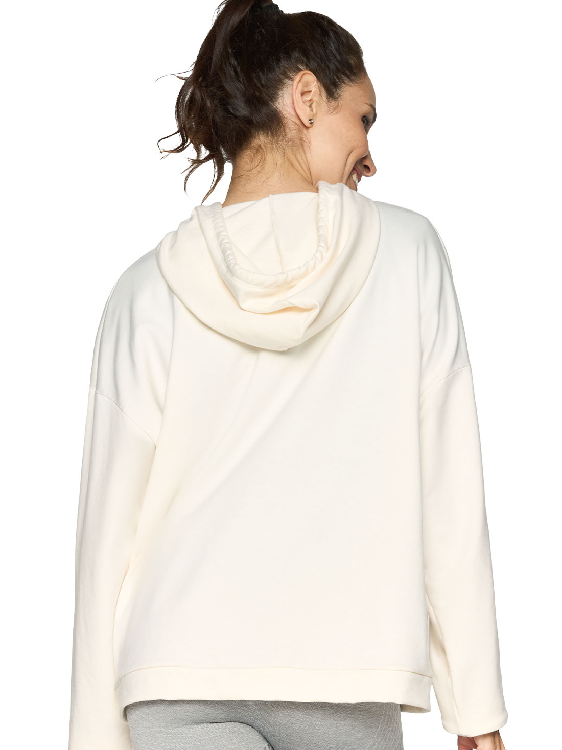 Sudadera afelpada con interior suave que brinda calidez y confort. Diseño con capucha y jaretas funcionales para ajustar a tu medida. Silueta recta y detalle estampado que añade estilo. Perfecta para días fríos y looks casuales.
