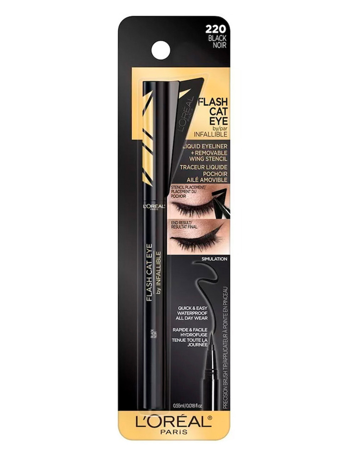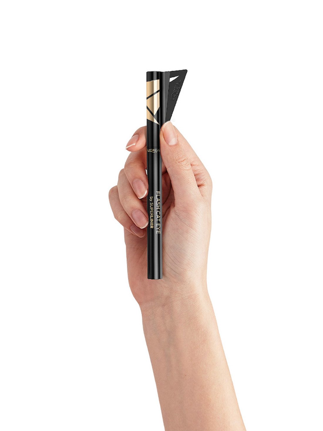 - Con una plantilla de alas extraíble en la tapa que ayudará a obtener un look “cat eye” fácil y rápido