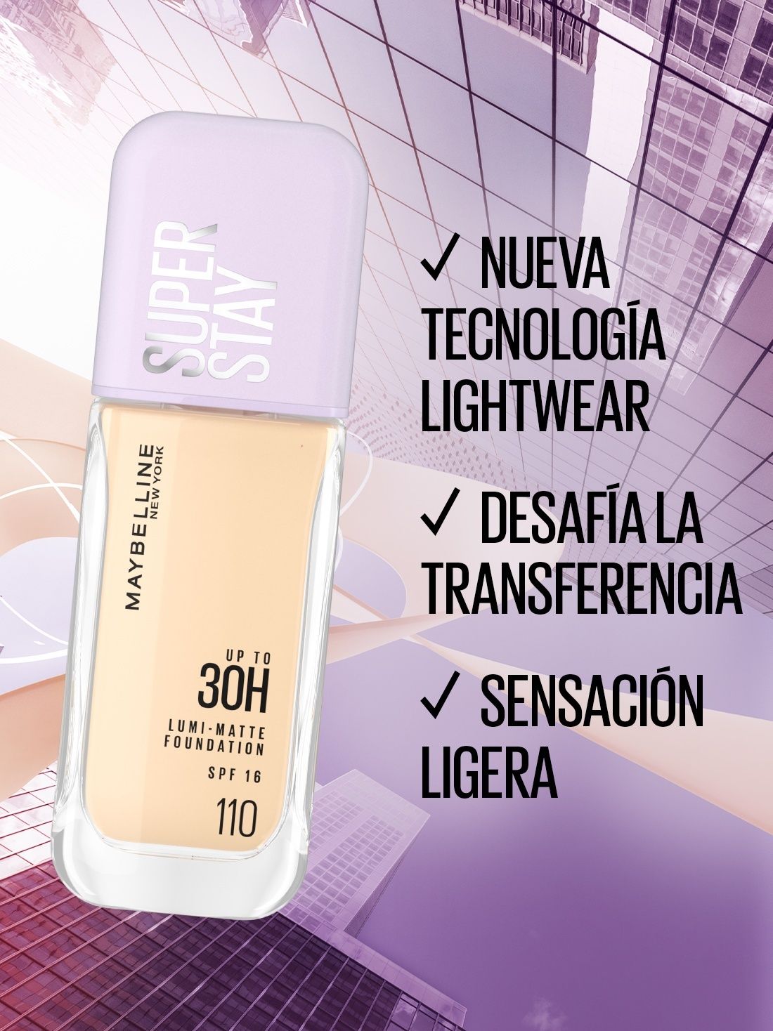 ¡Nueva Superstay Lumi Matte, de Maybelline NY! Base de maquillaje líquida que se ve y se siente liviana, dejando la piel con un acabado liuminoso; a prueba de agua y sudor.