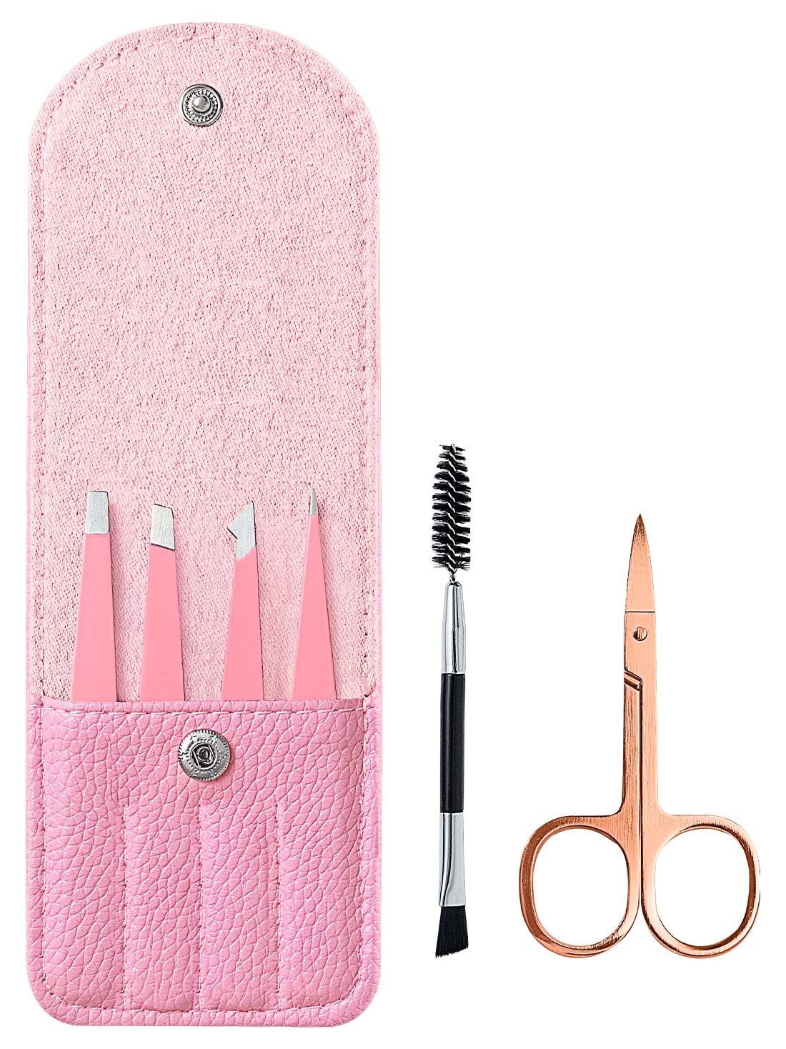 - Contiene: 4 pinzas depiladoras, 1 tijeras y 1 cepillo doble