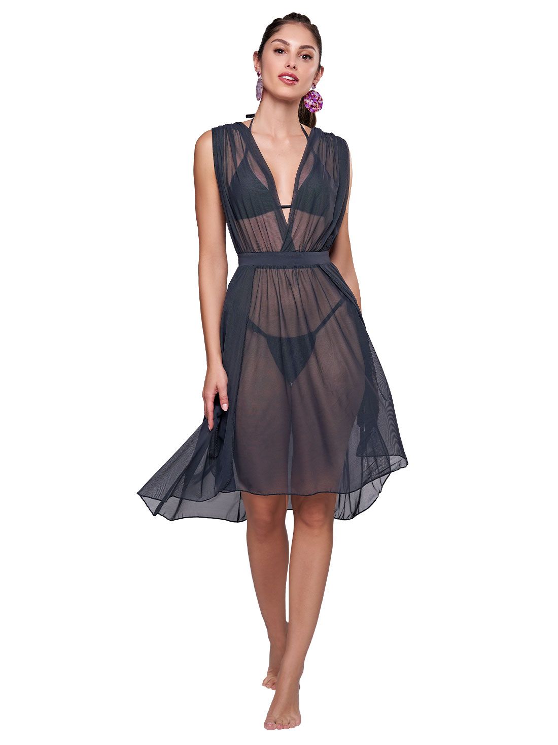 Salida de playa en tul plisado con estilo asimétricoLuce espectacular dentro y fuera del agua con esta salida de playa diseñada para estilizar tu figura y complementar tu look veraniego. Su escote en V, fruncido en tirantes y corte asimétrico crean una silueta visualmente favorecedora, mientras que el elástico en la cintura se adapta suavemente a tu cuerpo. El tul plisado aporta frescura y un toque sofisticado que hará que no pases desapercibida.