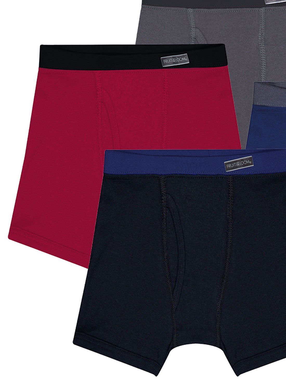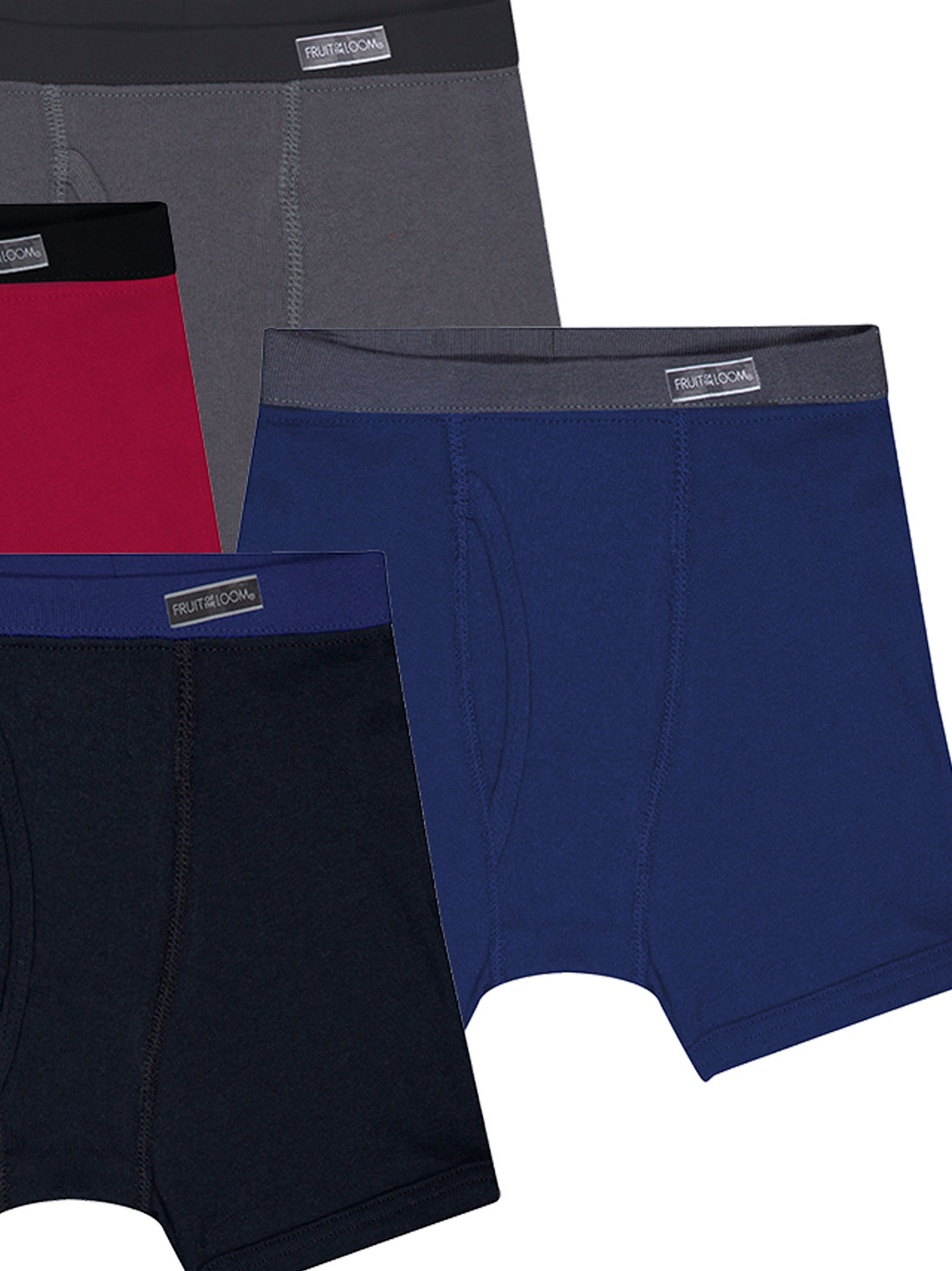Paquete de 4 bóxers para niño Fruit of the Loom con elástico en la cintura suave al tacto y control de humedad. Confort y frescura todo el día.