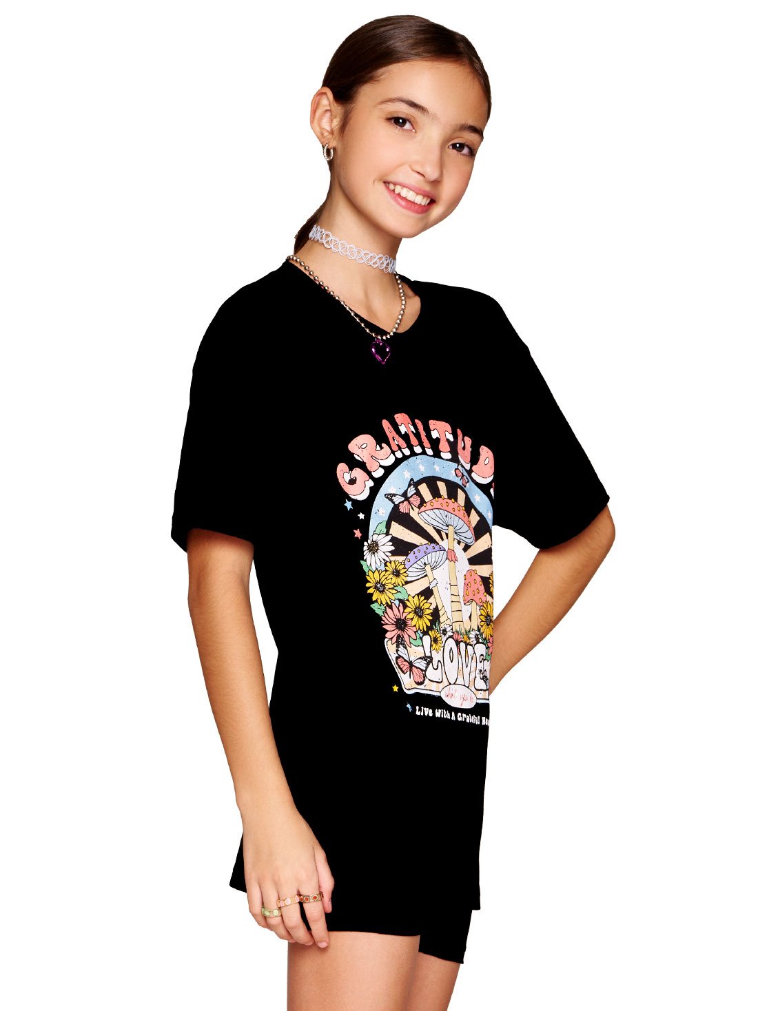 Esta playera para niña es la definición del confort y el estilo. Con su silueta holgada y suave tela, brinda una comodidad incomparable para las aventuras del día a día. Los estampados al frente añaden un toque de diversión y originalidad