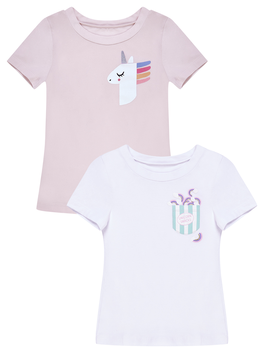 Este paquete de 2 playeras será ideal para cualquier ocasión. Sus serigrafías divertidas al frente con brillos, la suavidad y comodidad de su tela te llevarán a crear diferentes combinaciones.