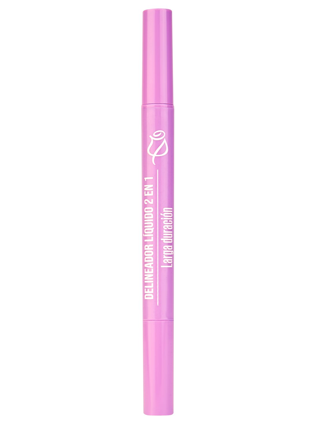 - Delineador para ojos doble; pincel fino de un lado para crear trazos precisos y un sello decorativo del otro lado para embellecer tu maquillaje
