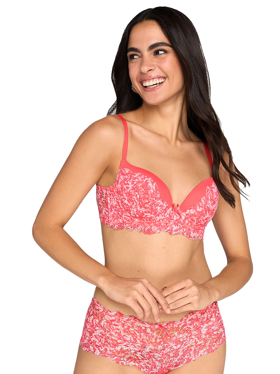 Este bóxer de encaje tiene corte tipo hipster, que cubre cadera y glúteos con comodidad. El encaje es suave al tacto y el puente de algodón cuida tu zona íntima. El elástico en la cintura se adapta sin apretar. ¡Femenino, cómodo y perfecto para diario!