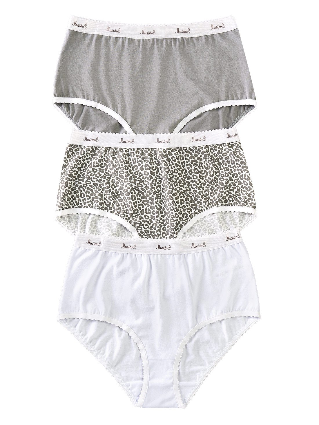 Este pack incluye 3 panties con cobertura total de colores diferentes. Su elástico estampado y puente de algodón ofrecen estilo y comodidad.