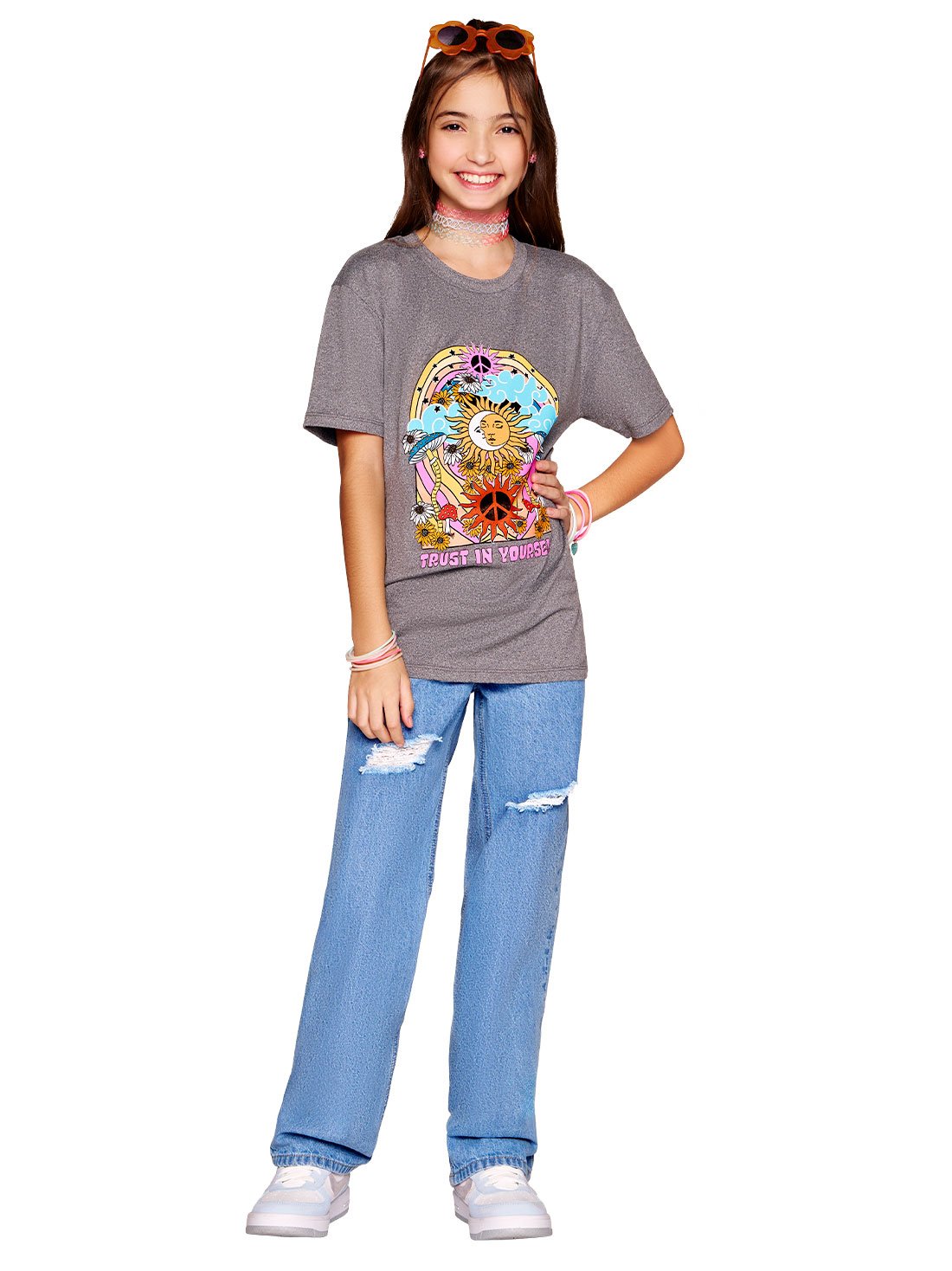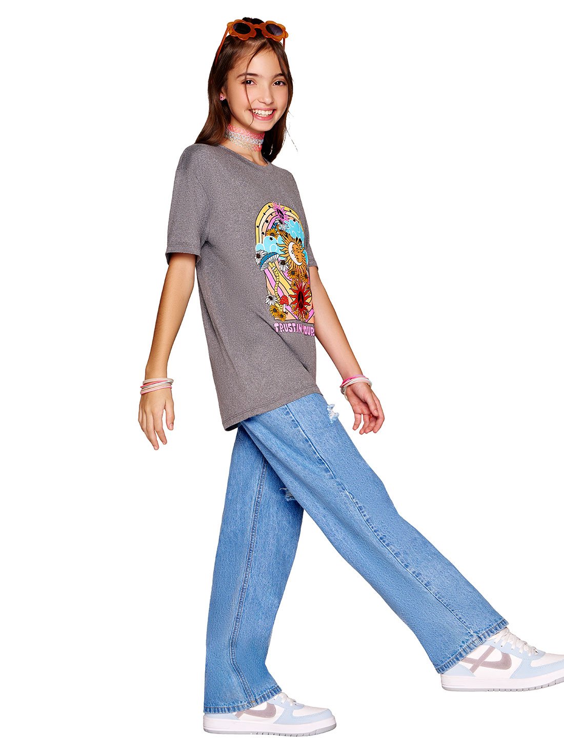 Esta playera para niña es la definición del confort y el estilo. Con su silueta holgada y suave tela, brinda una comodidad incomparable para las aventuras del día a día. Los estampados al frente añaden un toque de diversión y originalidad
