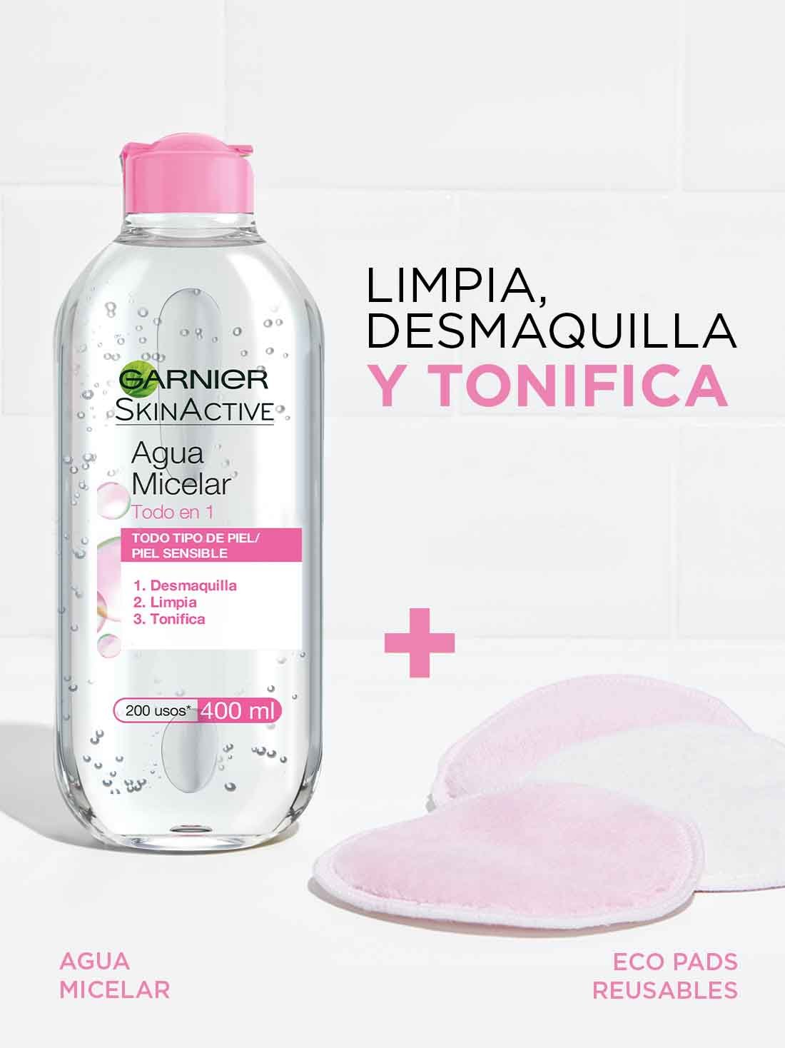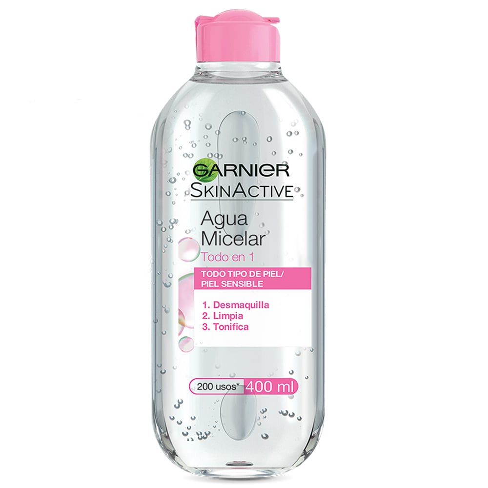 - Agua micelar todo en uno de Garnier desmaquilla, Limpia y tonifica tu piel. Es ideal para todo tipo de piel y para remover maquillaje lavable