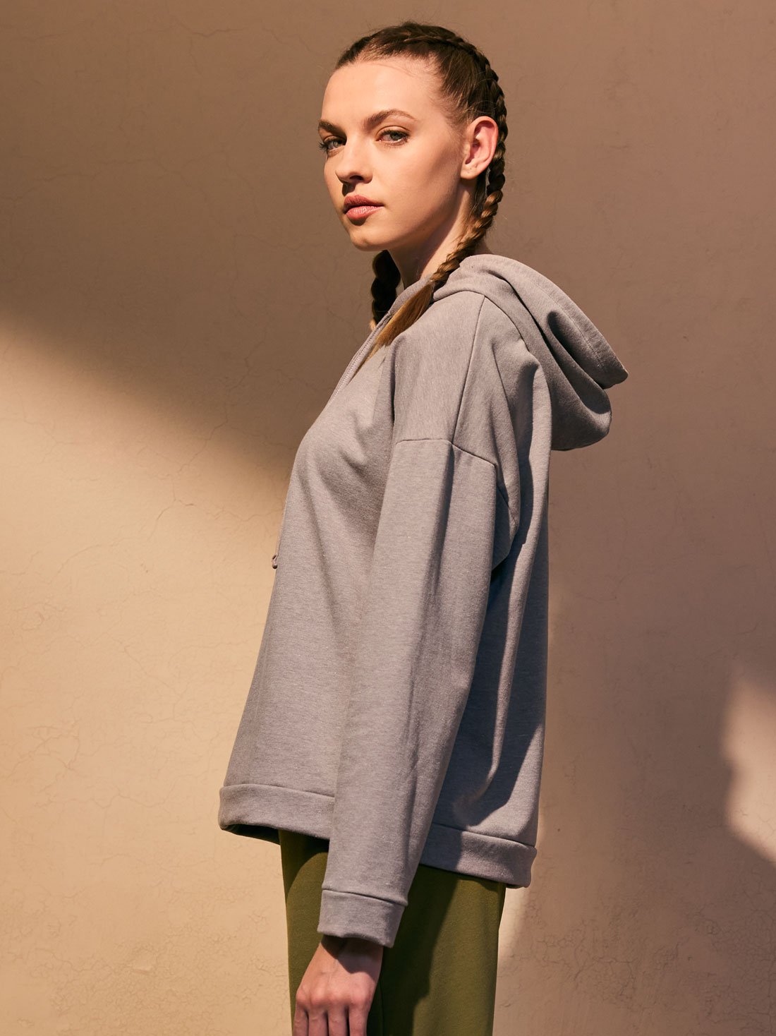 Esta sudadera con capucha es ese abrazo suave que necesitas en días frescos. Su interior afelpado te mantiene calientita, mientras que la silueta holgada y el largo a la cadera te dan libertad para moverte con comodidad.